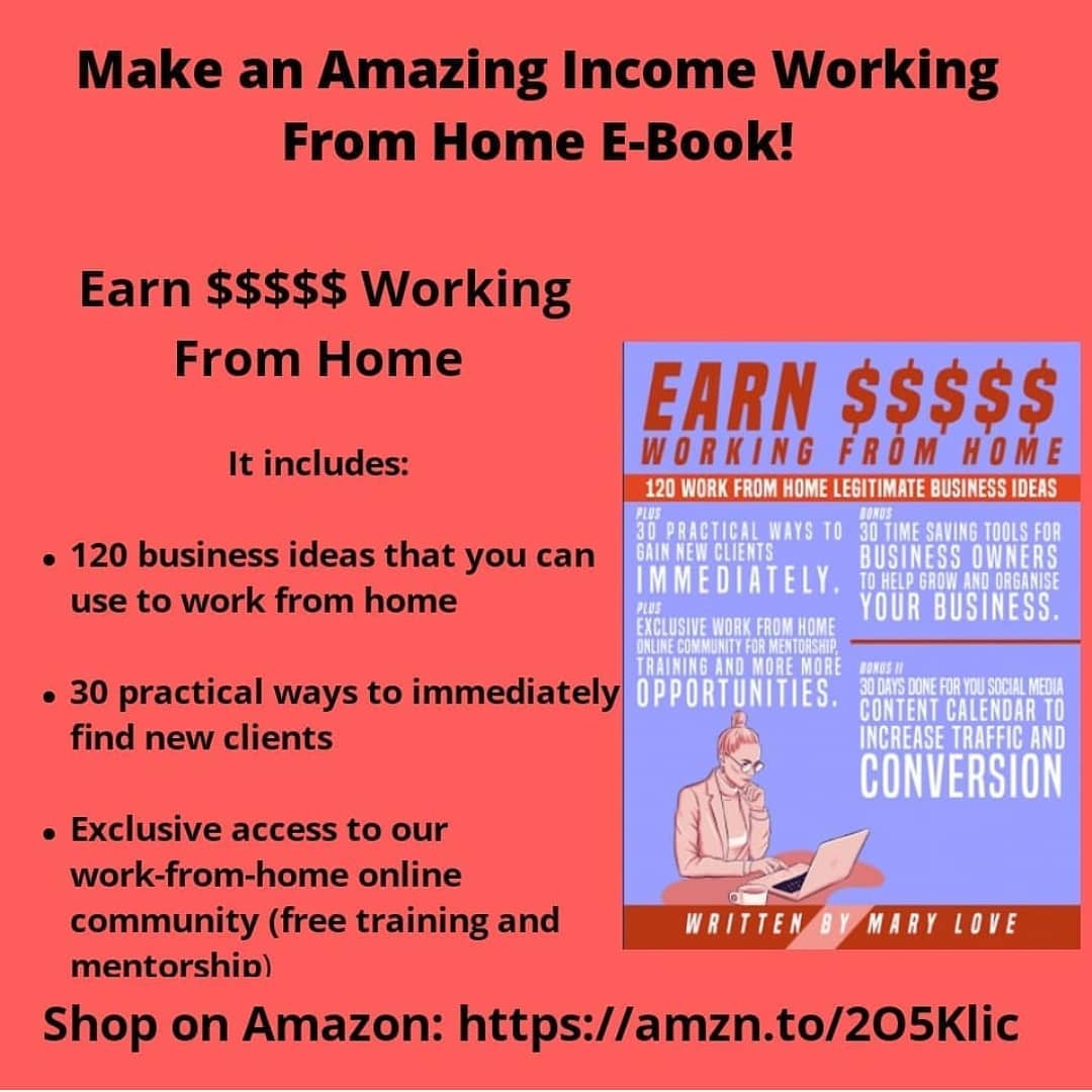 Need more ideas on an income generating opportunities that you can work on from home? Check out this e-book of 120 innovative ways to increase your income that are remote, flexible and requires low capital. These are all pandemic proof and you can start them immediately. โ